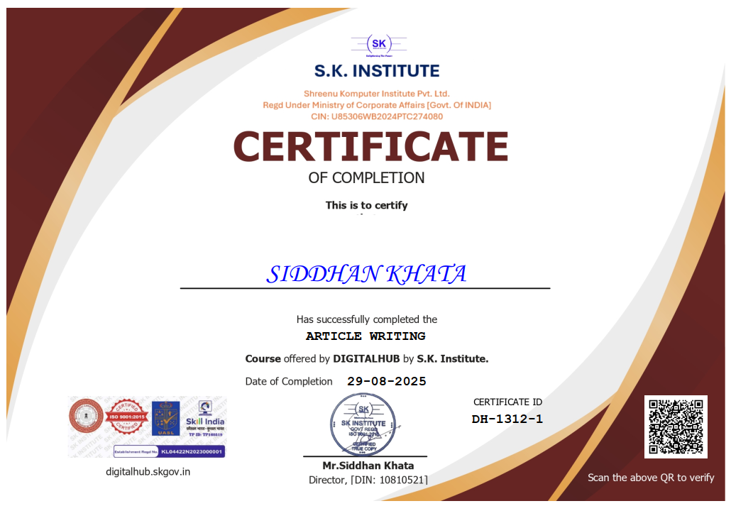 Pass Exam First then Pay to unlock Certificate by [GOVT OF INDIA REGD INSTITUTE] S.K. Institute